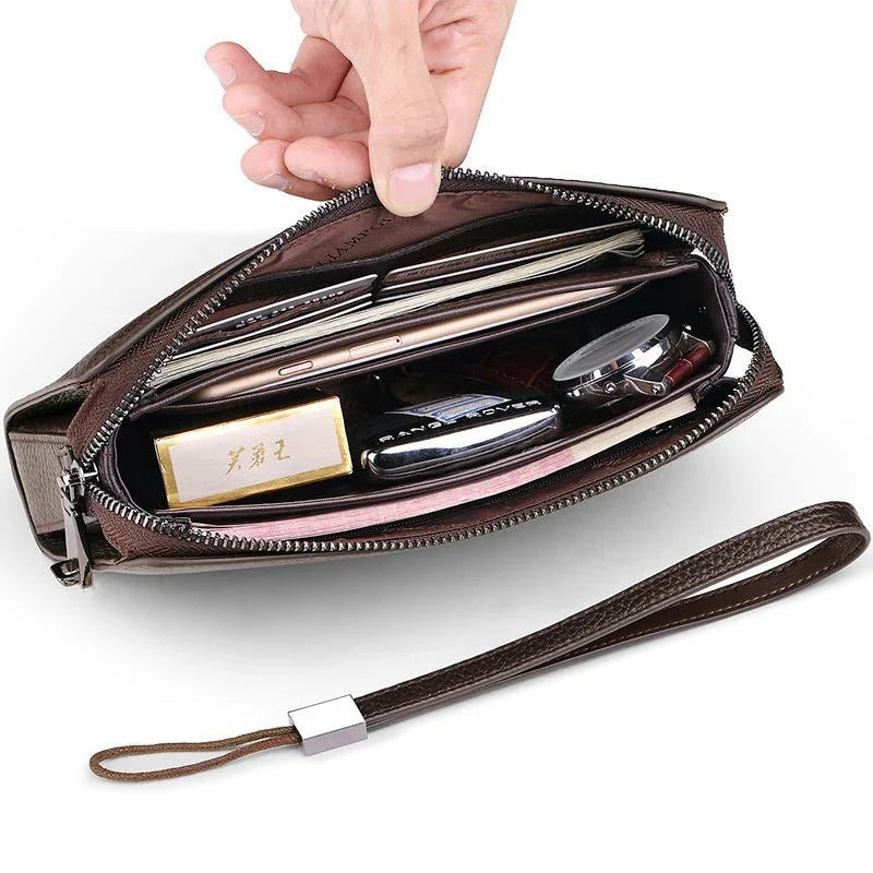 Crafted from first-layer cowhide, this premium men’s clutch combines durability with timeless style. Designed in a horizontal square shape with a solid litchi pattern embossing, it offers both sophistication and practicality for everyday use.